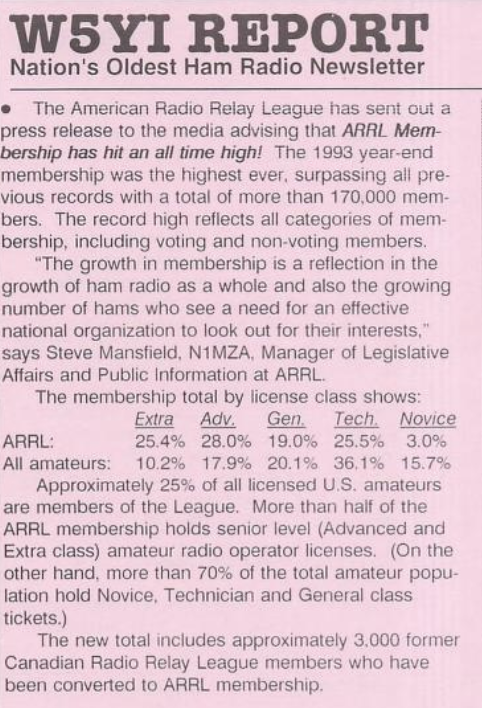 Added ARRL membership 170,000 end of 1993.